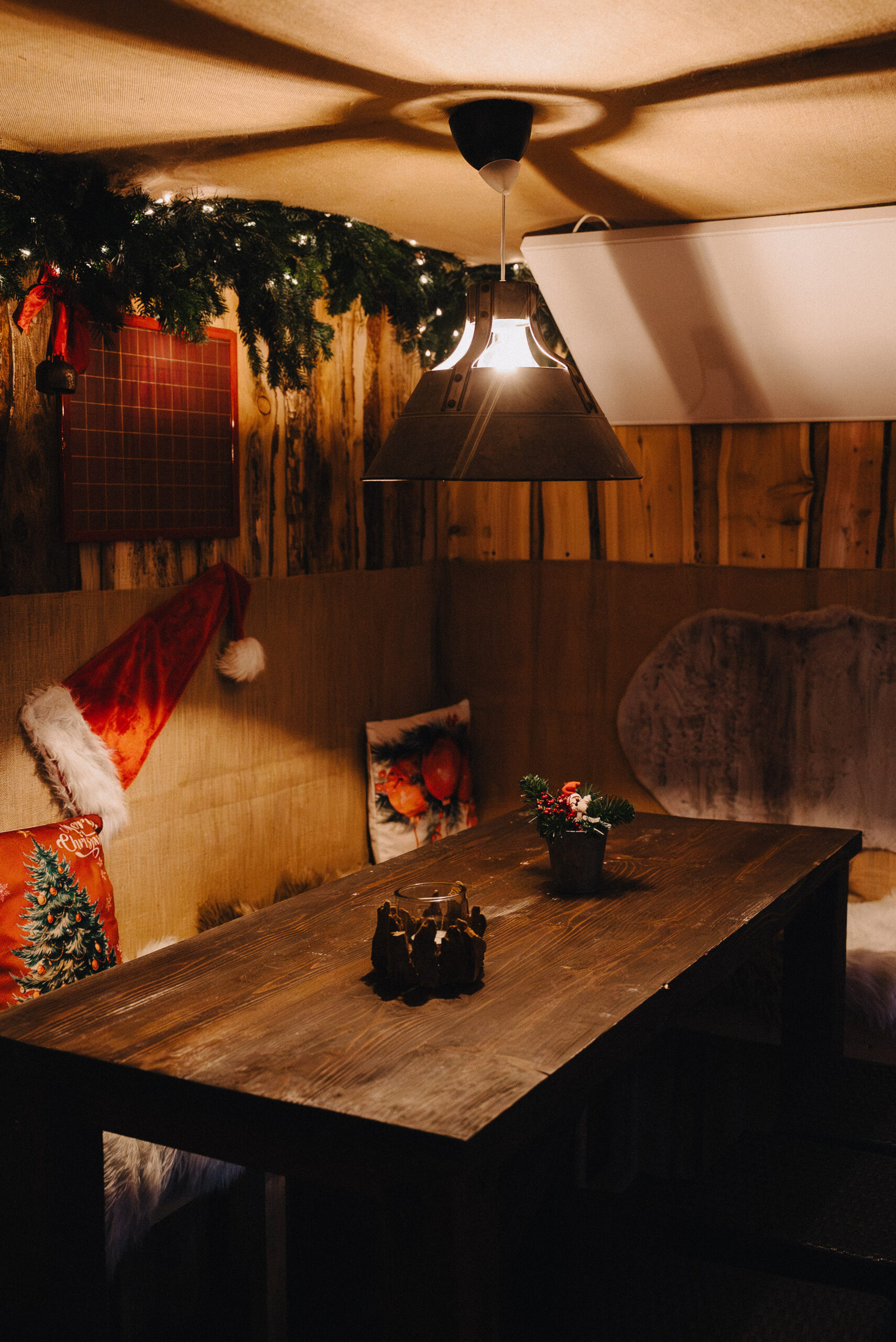 Unser Winterdorf liegt idyllisch am Rande der Eilenriede, was eine einzigartige Kulisse für das winterliche Flair bietet. Umgeben von Tannen und einer gemütlichen Almhütte könnt ihr Heißgetränke und leckere Speisen genießen.